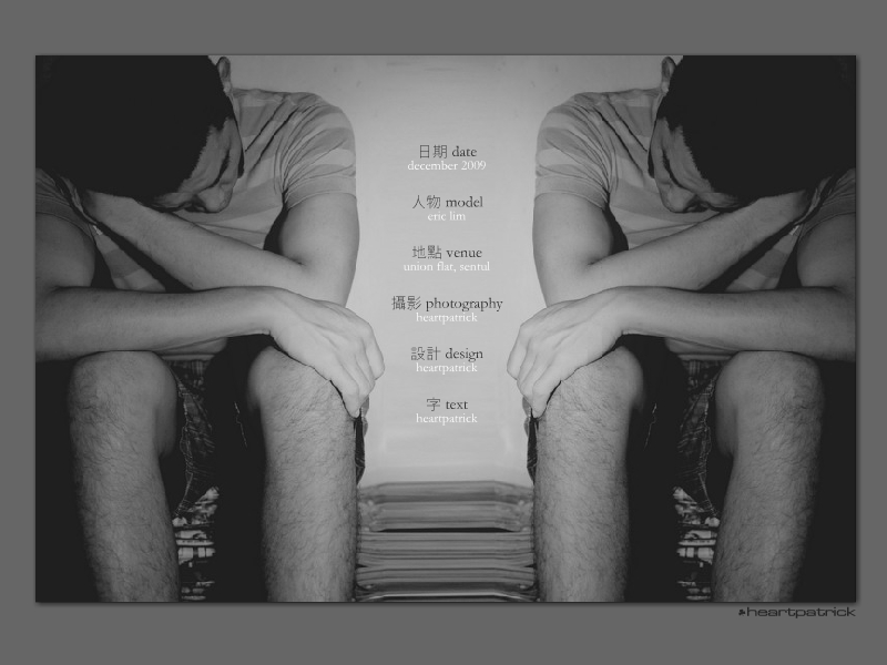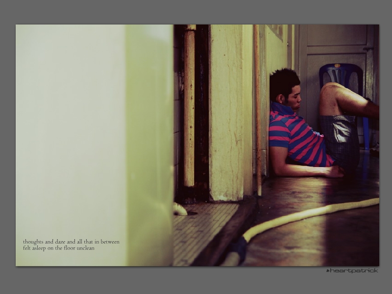 Shot in slightly under two hours on Christmas Day is a dark moody theme done at the quaint central courtyard layout of Union Flats, Sentul. Special thanks to Eric Lim for being such a sport, takes alot of courage indeed to stick his body into various dirt-infested corners of his rented place.