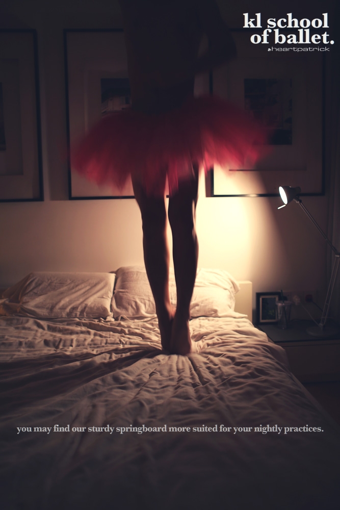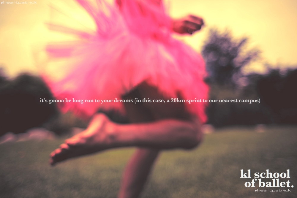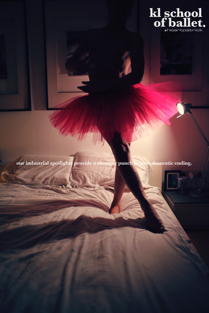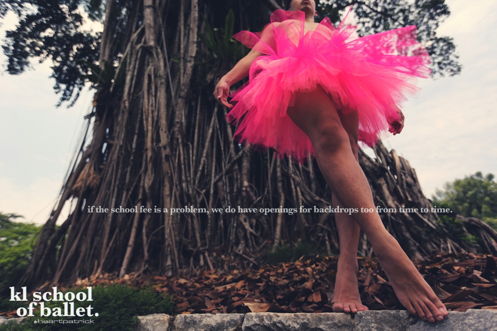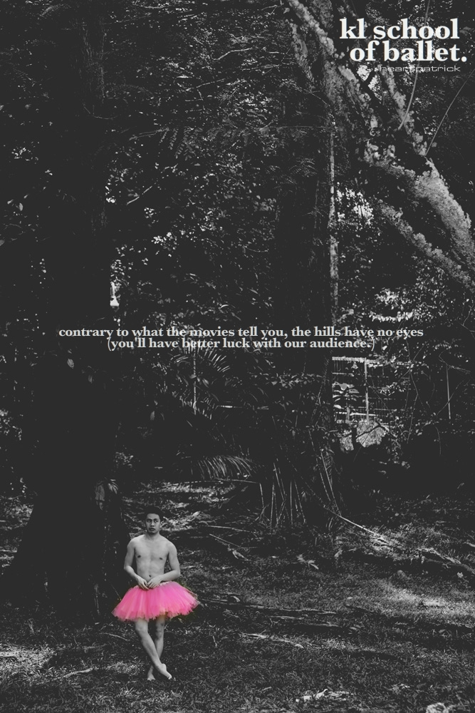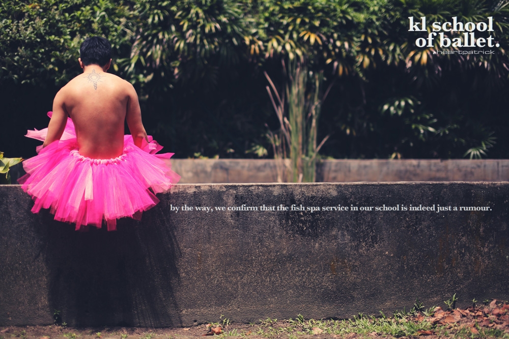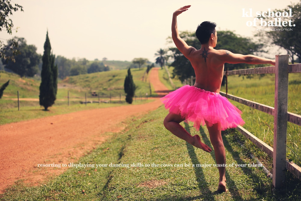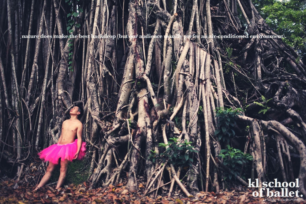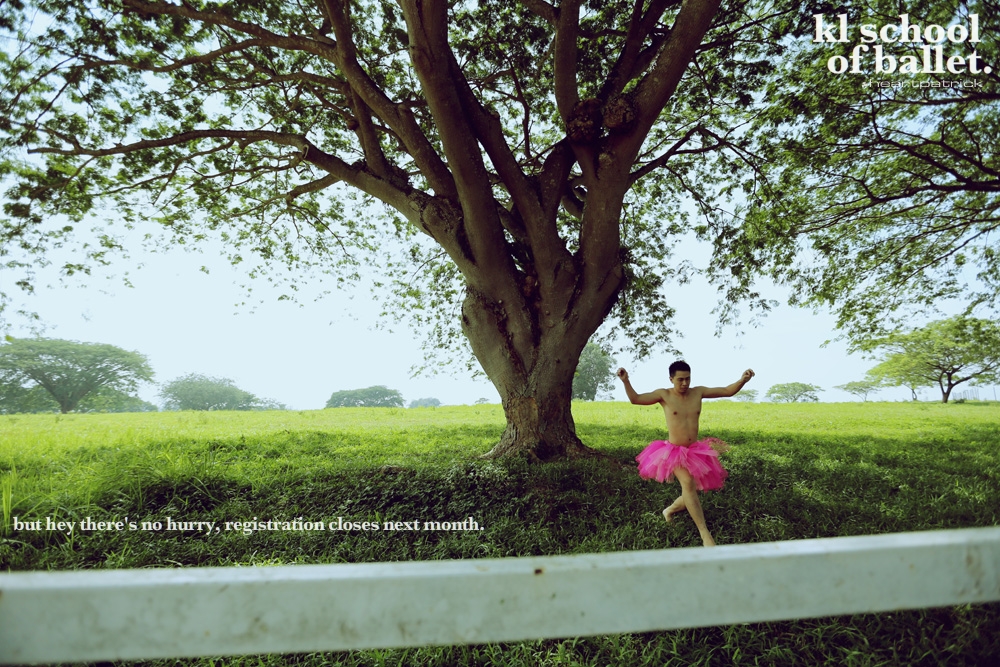 The conceptual collaboration with the KL School of Ballet brought me this set of visuals, used to drive student recruitment for their Year 2013 flagship program. Special thanks to the model for painstakingly making the tutu himself, for almost baring it all in the name of art, and for enduring the various itches and scratches and bites and stings from nature today.